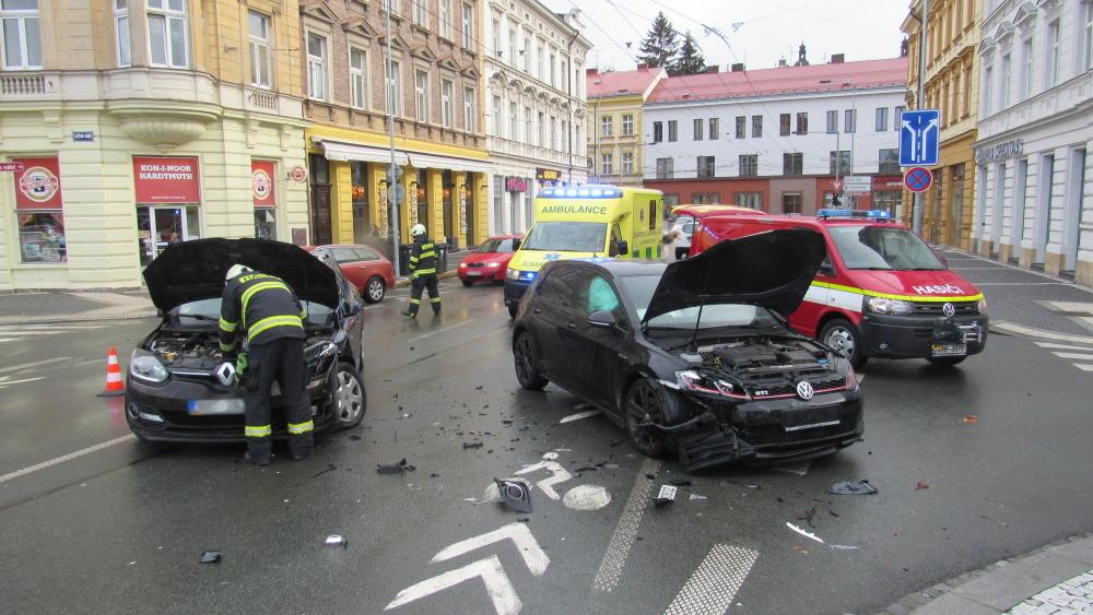 V Srdínkově ulici se střetla dvě osobní vozidla, na místo zásahu vyjeli profesionální hasiči z centrální stanice. Jednotka provedla na havarovaných vozech protipožární opatření a odpojila baterie. Do příjezdu policie pak hasiči řídili v místě nehody dopravu.