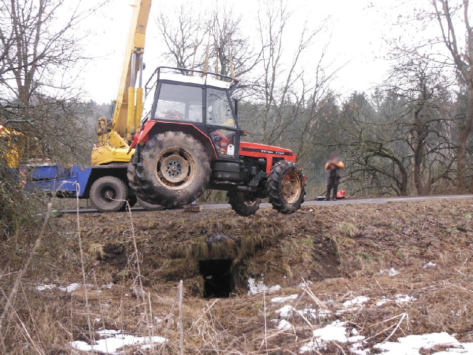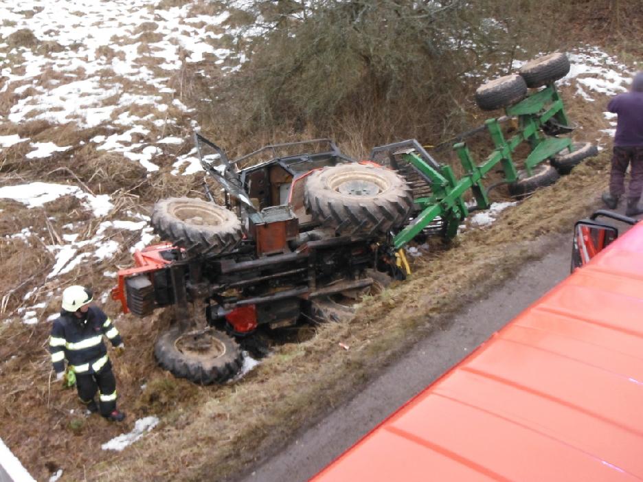 Hasiči unikající provozní kapaliny jímali a po došetření nehody policisty pomohli s vyproštěním traktoru. Poté se jednotka postarala o sanaci půdy, do které se uniklý olej a nafta vsákly.