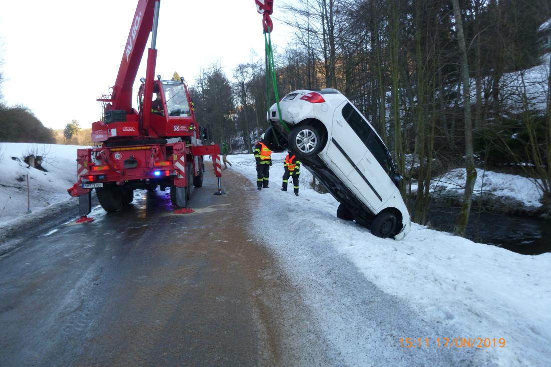 Hasiči zapadlé vozidlo uvolnili a bez poškození ho pomocí vyprošťovacího automobilu dostali zpět na silnici. Místo zásahu si následně převzali policisté.