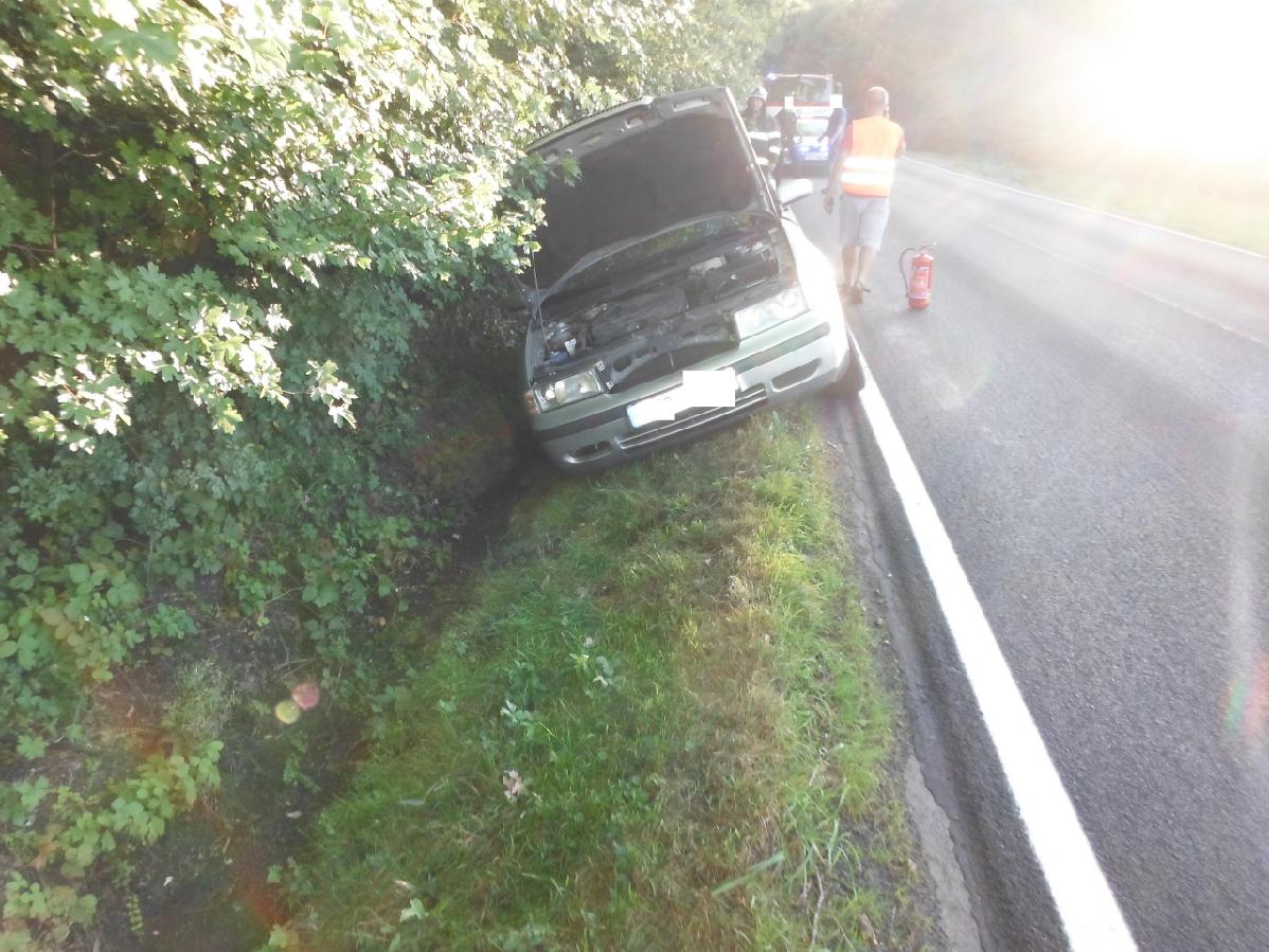 Profesionální hasiči z Rychnova nad Kněžnou a týnišští dobrovolní hasiči byli ve 20:57 přivoláni k osobnímu vozidlu, které vyjelo mimo vozovku. Nehoda se stala v Týništi nad Orlicí u odbočky na Petrovice. Hasiči poskytli zraněnému řidiči předlékařskou pomoc. Poté byl muž předán do péče zdravotnické záchranné služby a byl odvezen sanitou do nemocnice. Hasiči provedli na voze protipožární opatření. Došlo k poškození lampy veřejného osvětlení. Provoz byl v místě řízen Policií ČR kyvadlově. Jednotky provedly úklid komunikace.