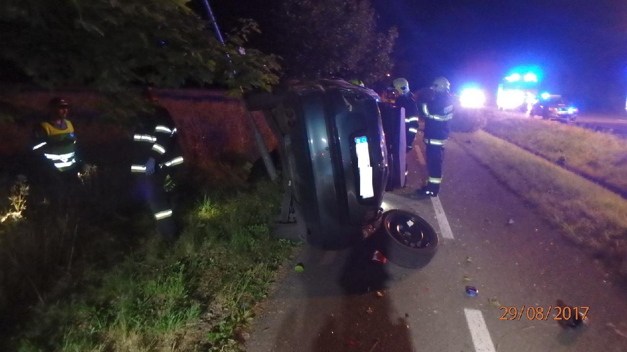 Náchodští profesionální a dobrovolní hasiči vyjeli ve 23:43 k osobnímu automobilu, které se po střetu se srnou převrátilo na střechu. Jednotky otočily vozidlo zpět na kola a provedly úklid komunikace. Jedna osoba utrpěla zranění a byla ošetřena zdravotnickou záchrannou službou.
