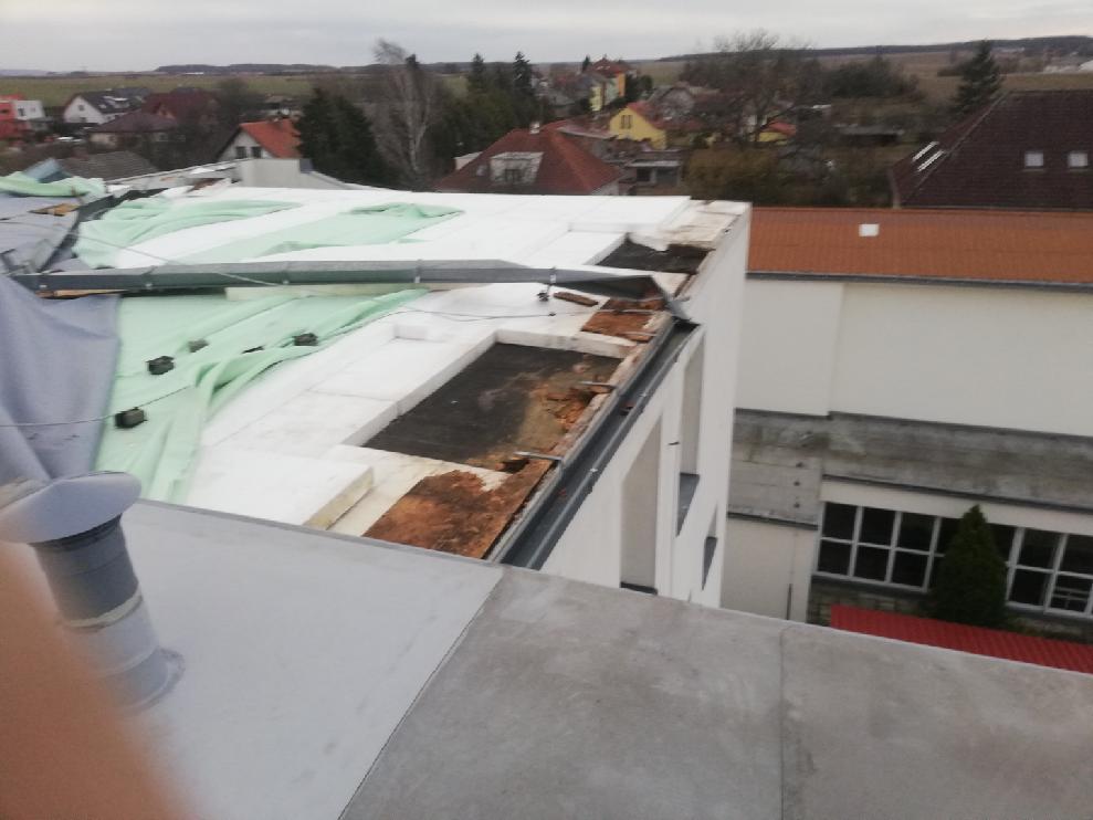 V části Benešov pomáhali profesionální hasiči z Broumova se zajištěním poškozené střechy na bytovém domě. V blízkosti se nacházelo elektrické vedení, které mohla poškodit. Uvolněnou část musela jednotka strhnout.