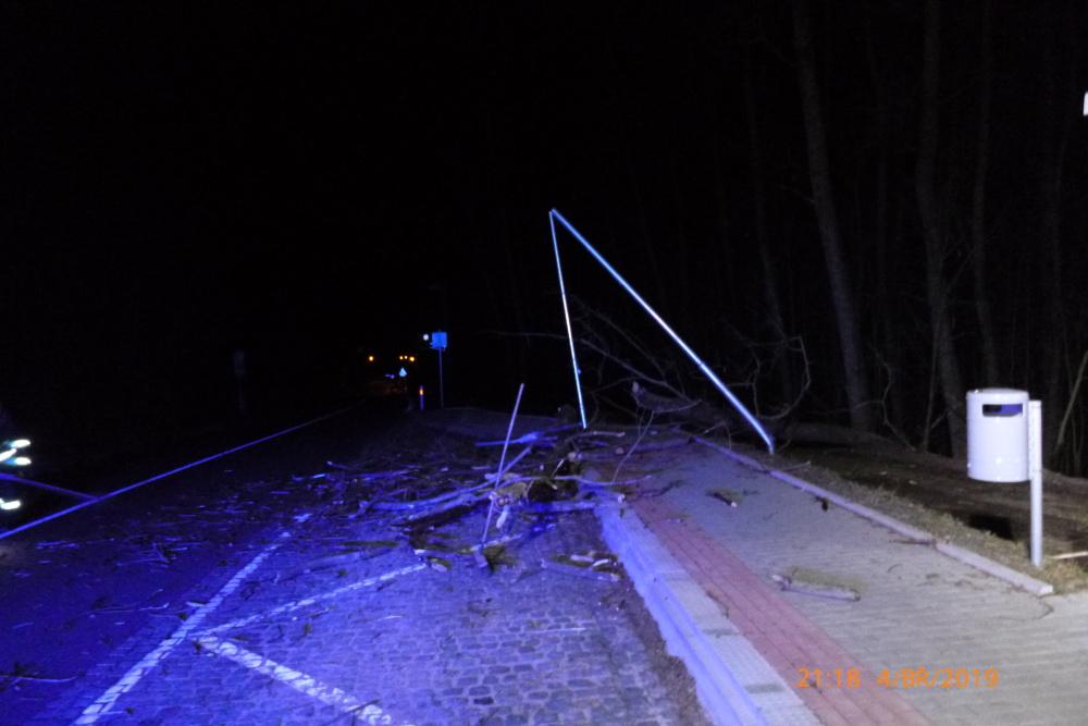 V části Pěkov spadl na komunikaci strom a při pádu poškodil také sloup veřejného osvětlení. Profesionální jednotka z Broumova zajistila místo události, poté si jej převzal zástupce technických služeb.