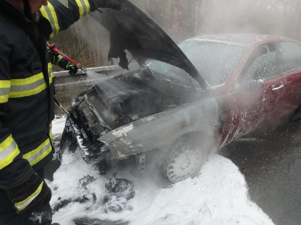 K nahlášenému požáru osobního vozidla vyjížděli profesionální hasiči z Nového Bydžova a dobrovolná jednotka z Chlumce nad Cidlinou. Vozidlo zn. Alfa Romeo hořelo při příjezdu jednotek v motorovém prostoru a požár se rozšířil i do vnitřku vozu.