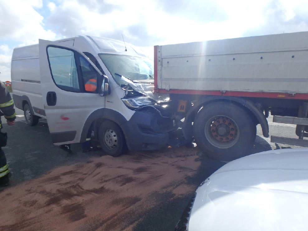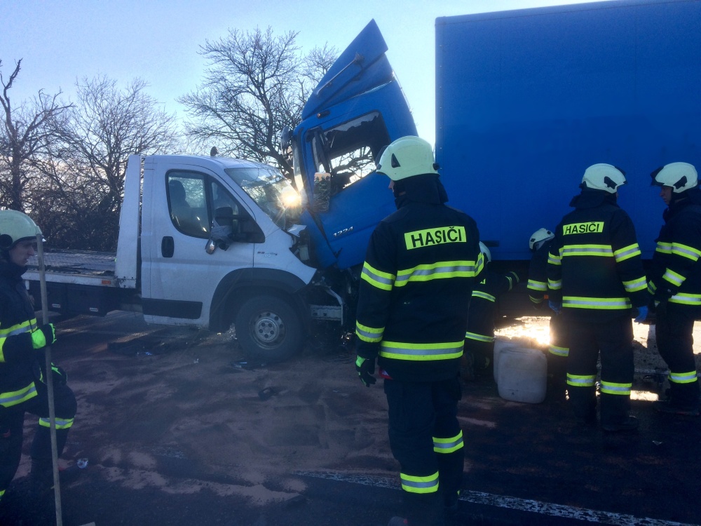 K dopravní nehodě dodávky a nákladního vozidla vyjížděli v úterý dopoledne profesionální hasiči z Nového Bydžova a dobrovolná jednotka z Chlumce nad Cidlinou. Dodávka zůstala po nehodě zaklíněna pod zadní částí přívěsu.