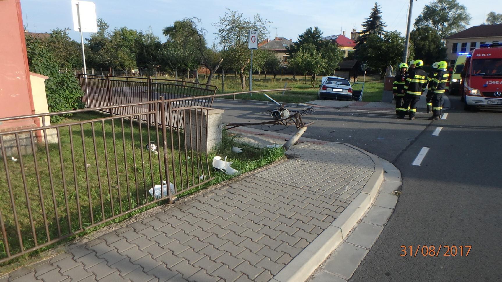 Profesionální hasiči z Rychnova nad Kněžnou a dobrovolní hasiči z Týniště nad Orlicí byli v 7:16 přivoláni k osobnímu vozidlu Škoda Felicia, s nímž jeho řidič vyjel mimo vozovku, porazil sloup s dopravním značením a najel do plotů. Hasiči zabezpečili vůz proti vzniku požáru a uklidili vozovku. Řidič byl odvezen sanitou na vyšetření do nemocnice.
