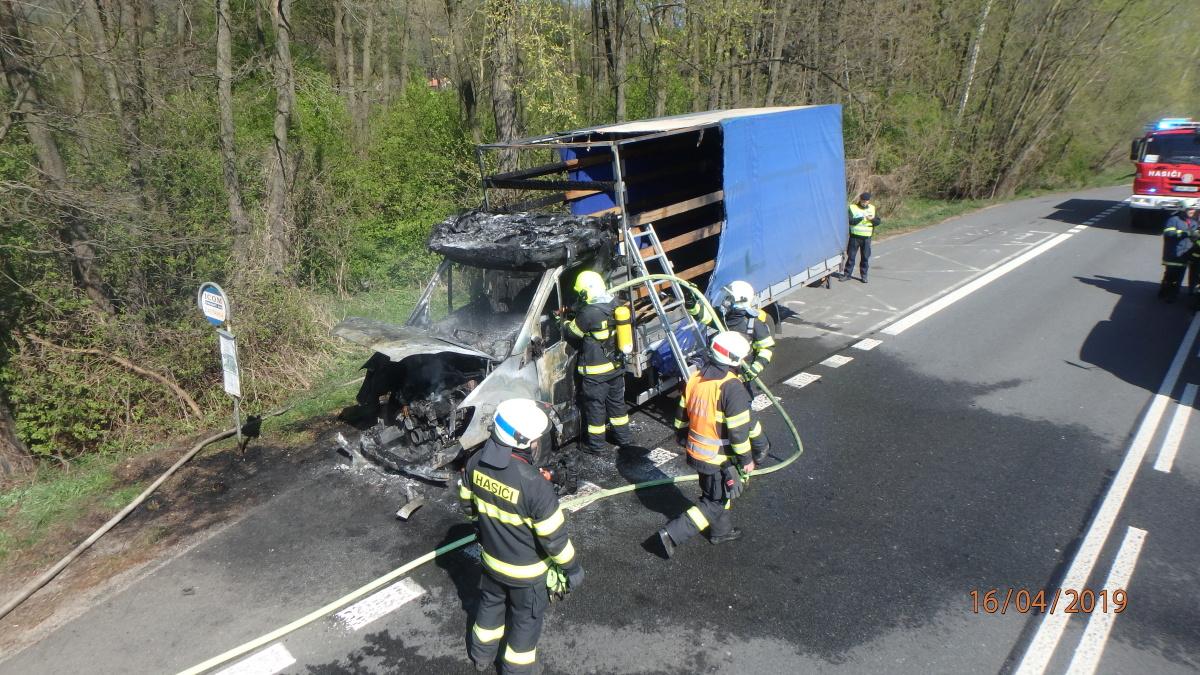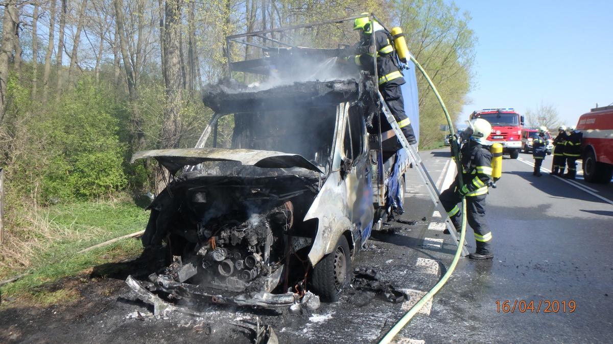 Čtyřem jednotkám hasičů byl vyhlášen poplach kvůli nahlášenému požáru dodávky na silnici č. I/11. Jednotky hořící automobil uhasily, a to pomocí několika vodních proudů. Komunikace byla na nezbytně nutnou dobu při zásahu hasičů neprůjezdná, následně řídily jednotky provoz kyvadlově.