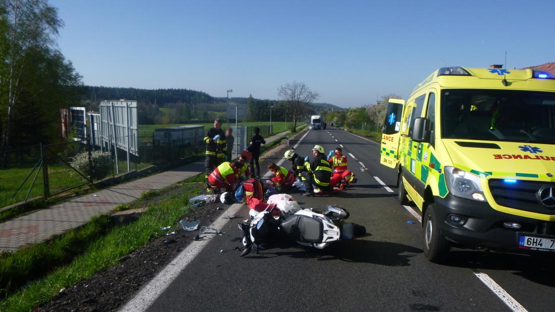 V katastru části Vlkov zasahovali ve čtvrtek ráno profesionální hasiči z Nové Paky spolu s dalšími složkami IZS u dopravní nehody osobního automobilu a motocyklu. Jednu zraněnou osobu si převzali do péče záchranáři, na místě zasahoval také vrtulník letecké záchranné služby. Jednotka pomáhala záchranářům při poskytování první pomoci a následně se postarala o odstranění následků dopravní nehody a úklid komunikace.