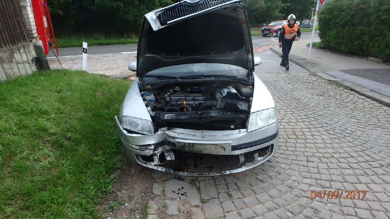 Královédvorští profesionální hasiči vyjeli v 17:06 k nehodě osobního vozidla, do ulice Krkonošská ve Dvoře Králové nad Labem. Řidička se vyhýbala protijedoucímu vozidlu a vyjel mimo komunikaci a narazila do plotu. Hasiči provedli na voze protipožární opatření a zasypaly uniklý olej sorbentem. Zdravotnická záchranná služba na místě ošetřila zraněnou řidičku.