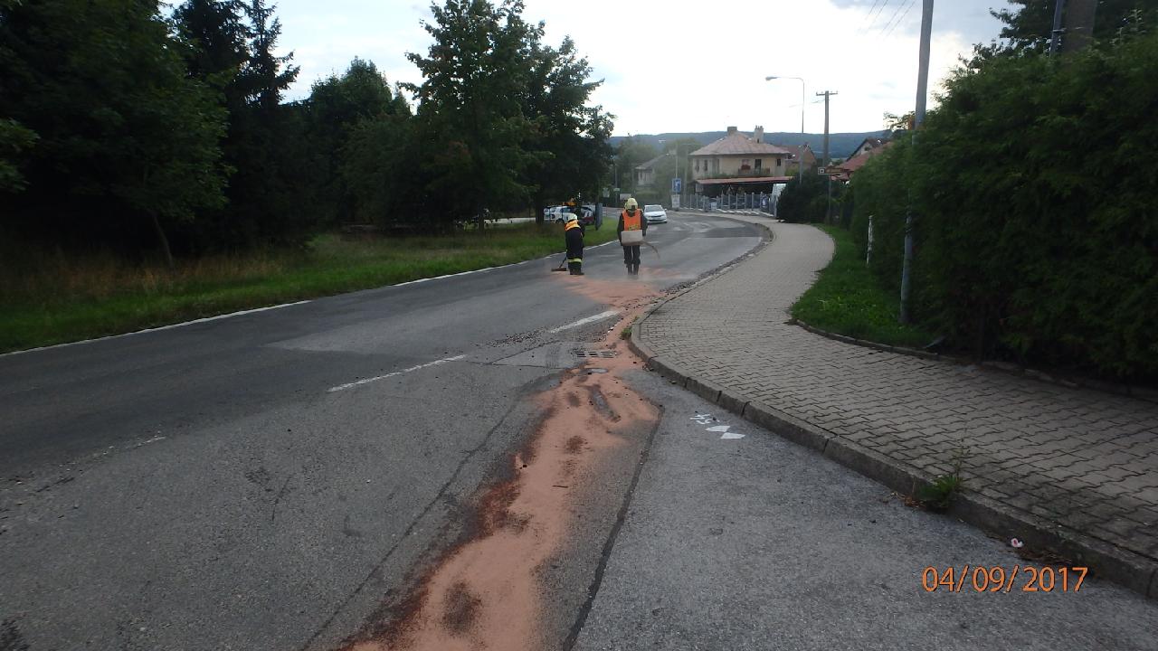 Jičínští profesionální hasiči vyjeli v 15:28 k odstranění olejové skvrny z ulice Riegrova v Jičíně. Olej unikl vlivem technické závady z vozidla.