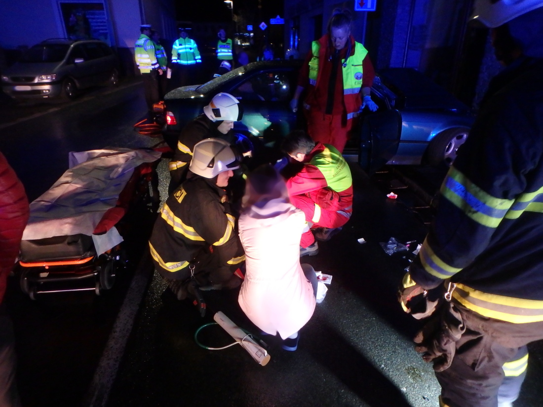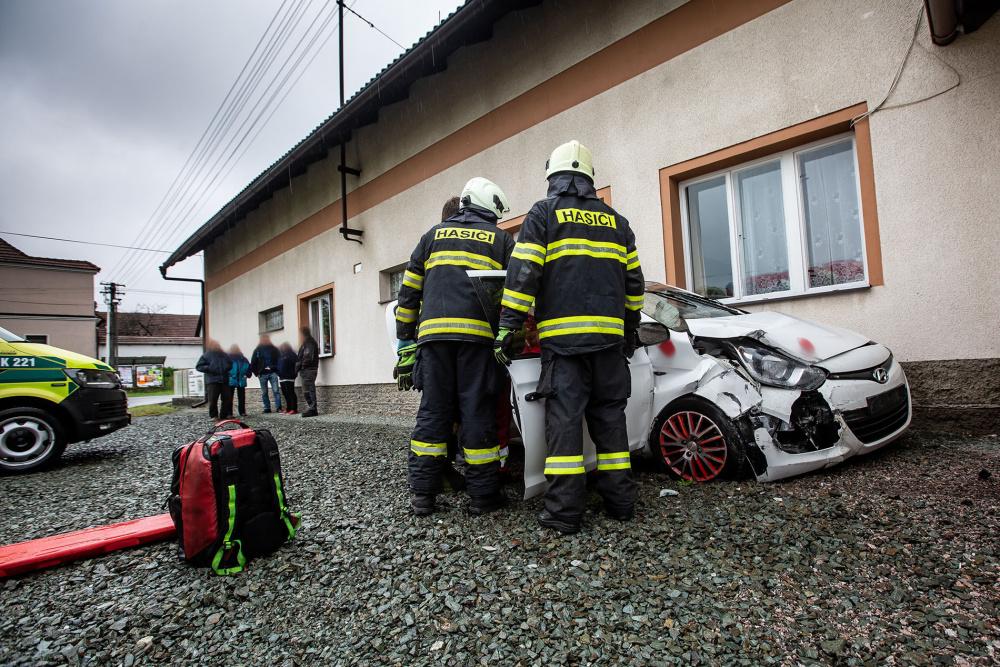 Vůz narazil v ulici T. G. Masaryka do zdi domu, tři osoby se při nehodě zranily. Jednotky místo události zajistily, poskytly zraněným první předlékařskou pomoc a prováděly vyprošťovací práce. Zraněné si do péče převzali zdravotničtí zcáhranáři, se kterými hasiči následně spolupracovali.