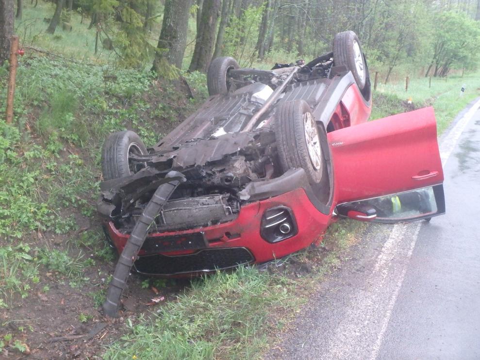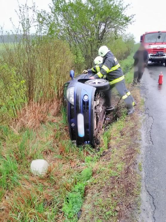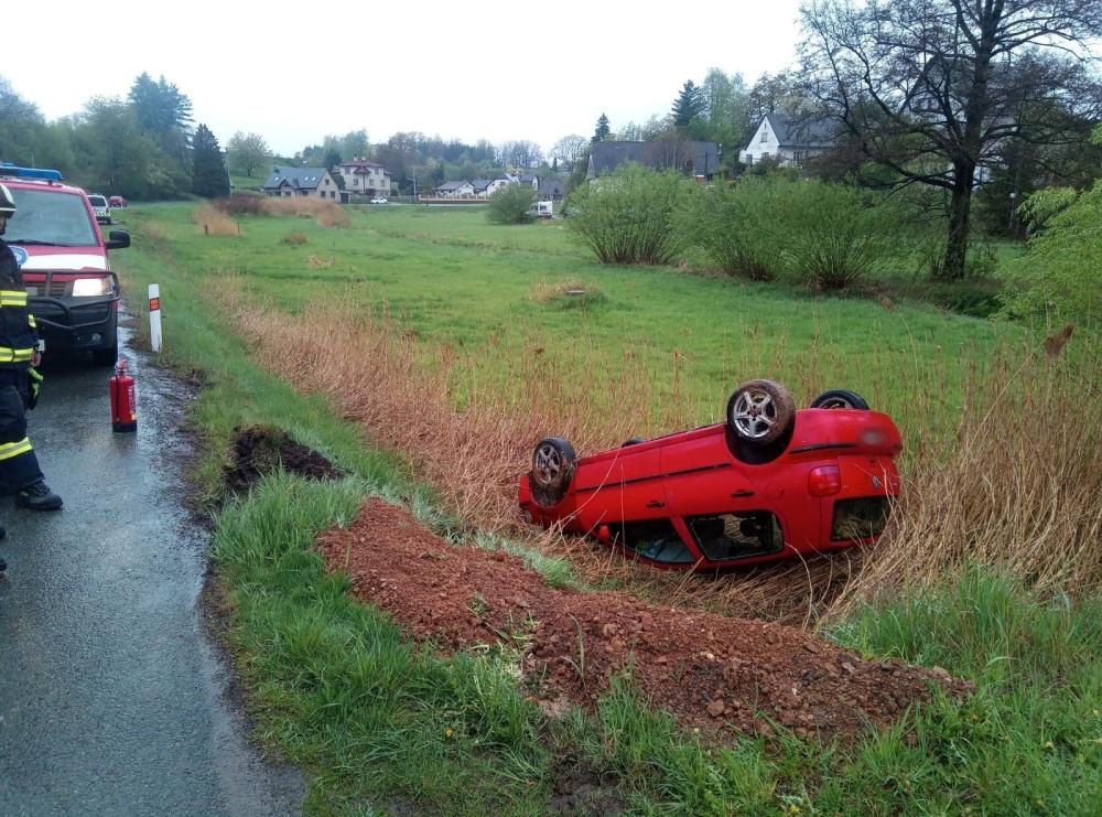 Na komunikaci v katastru části Starý Rokytník havaroval osobní automobil, který skončil převrácený na střechu vedle silnice. Na místo události spěchali profesionální hasiči z Trutnova a dobrovolná jednotka z Úpice.