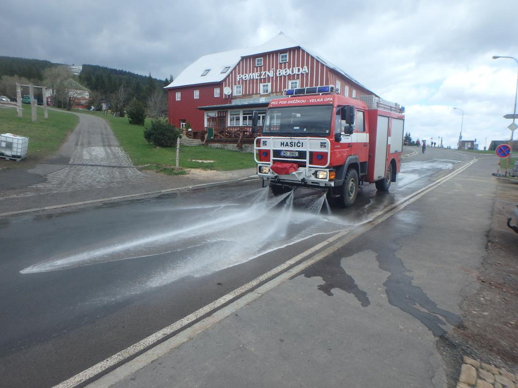 V části Horní Malá Úpa došlo k úniku většího množství nemrznoucí směsi na pozemní komunikaci. Hasiči ihned po svém příjezdu zajistili, aby se látka nešířila dále do kanalizace, nicméně část látky stačila vytéct. O situaci byly informovány orgány ochrany životního prostředí.