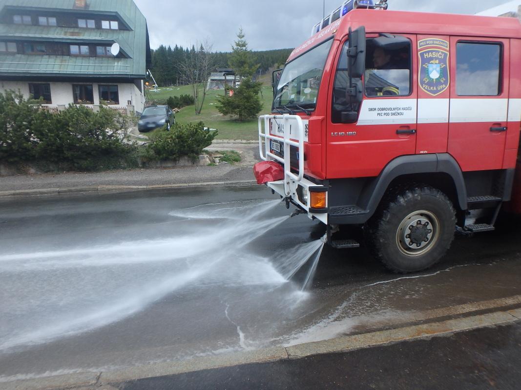 Dále bylo zjištěno, že uniklá látka není nebezpečná a je ředitelná vodou. Kapalinu z komunikace tak mohli hasiči spláchnout pomocí vodního proudu. Na místě události zasahovali profesionální hasiči z Trutnova, kteří využili také technická chemický automobil a dále JSDH Pec pod Sněžkou a Malá Úpa.