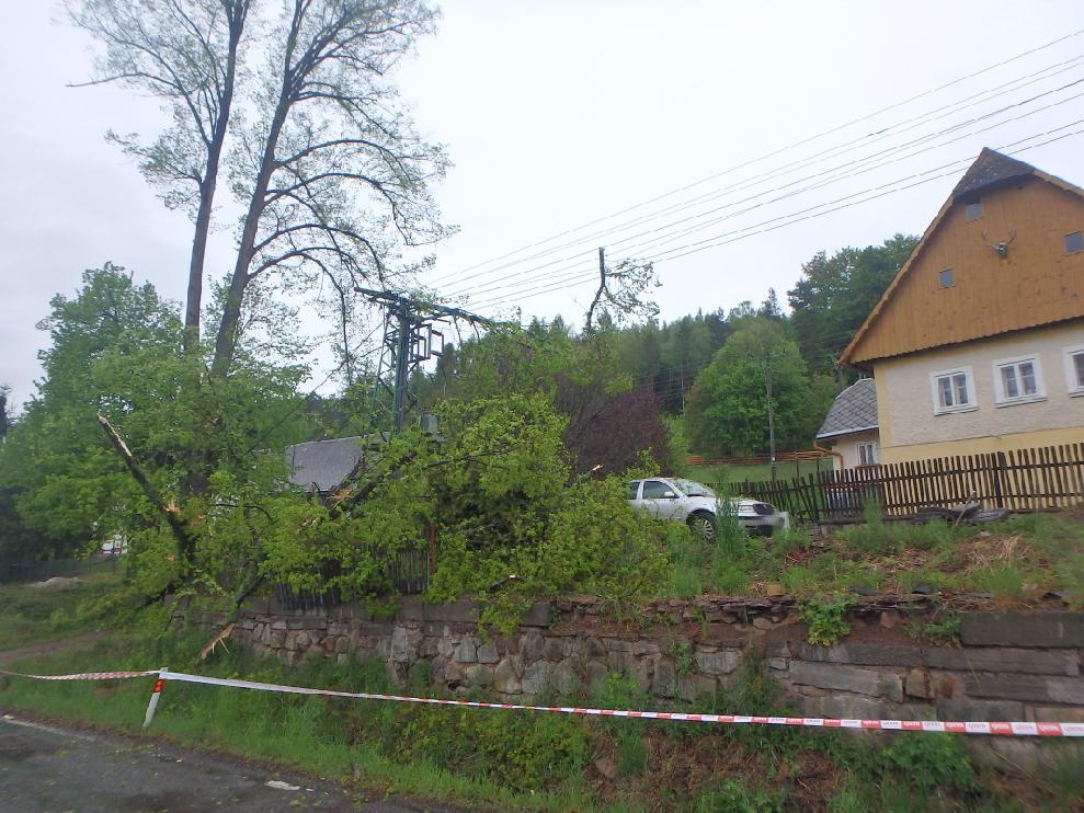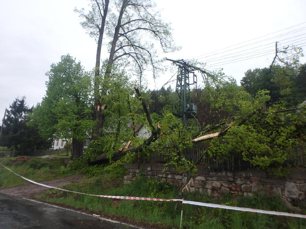 Dvě jednotky hasičů zasahovaly ve Svatoňovické ulici. Rozlomil se zde vzrostlý strom a část z něj spadla na rozvodnu a dráty elektrického napětí. Na místě spolupracovali hasiči s energetiky, jednotky strom rozřezaly a