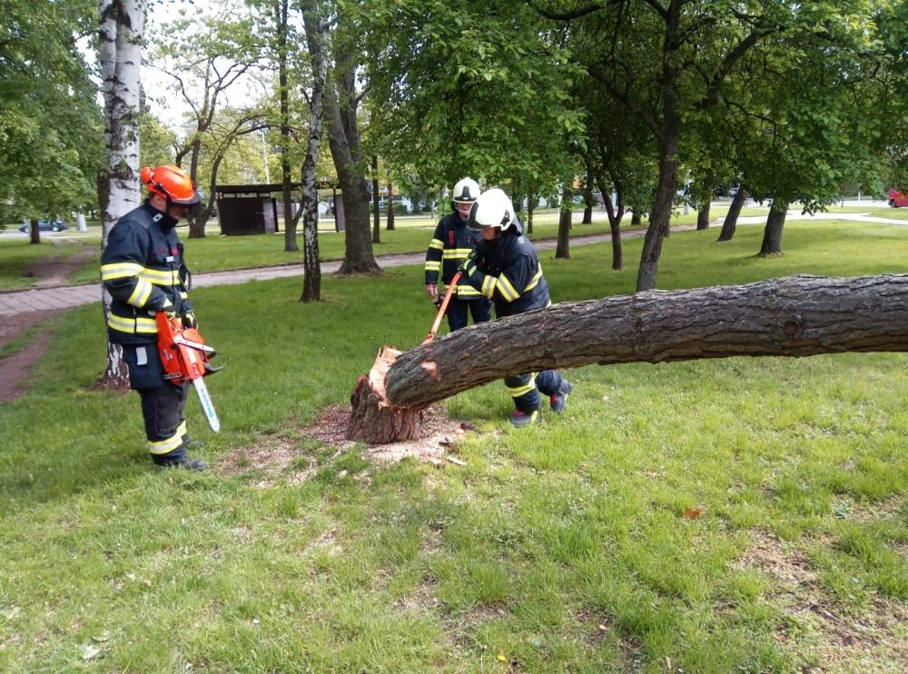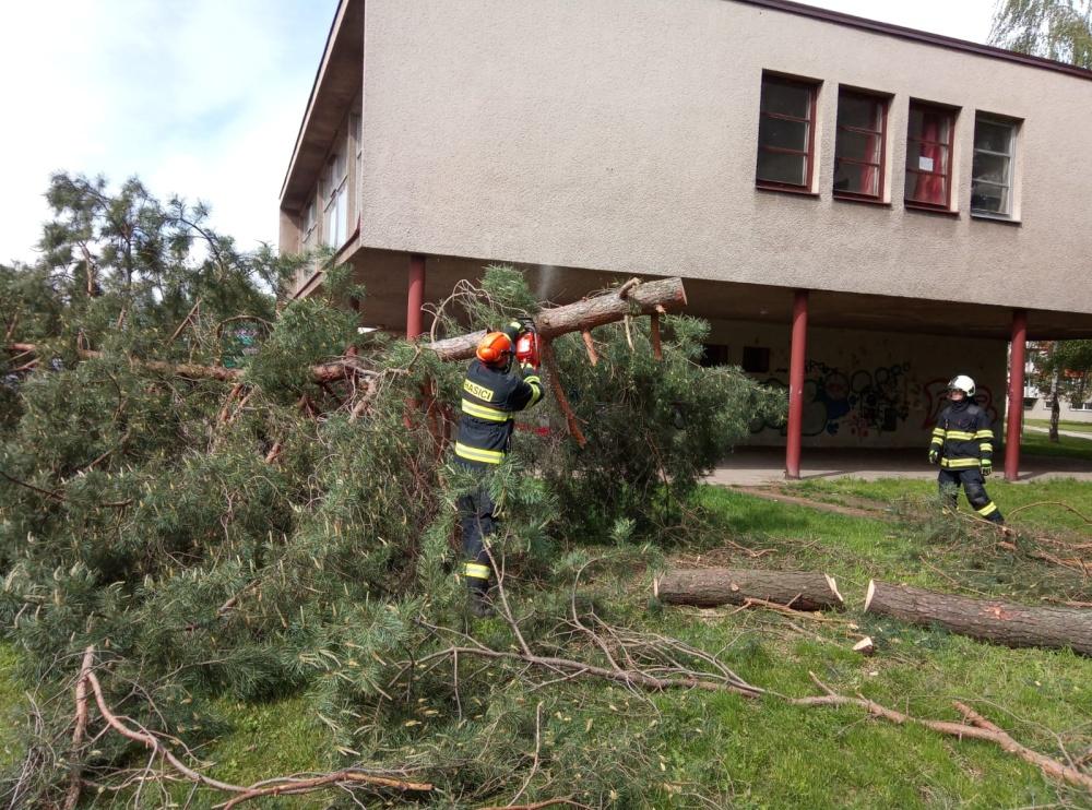 V Gagarinově ulici odstraňovali profesionální hasiči z centrální stanice strom, který byl nebezpečně nakloněný nad chodníkem a budovou. Jednotka strom pomocí motorové pily rozřezala.