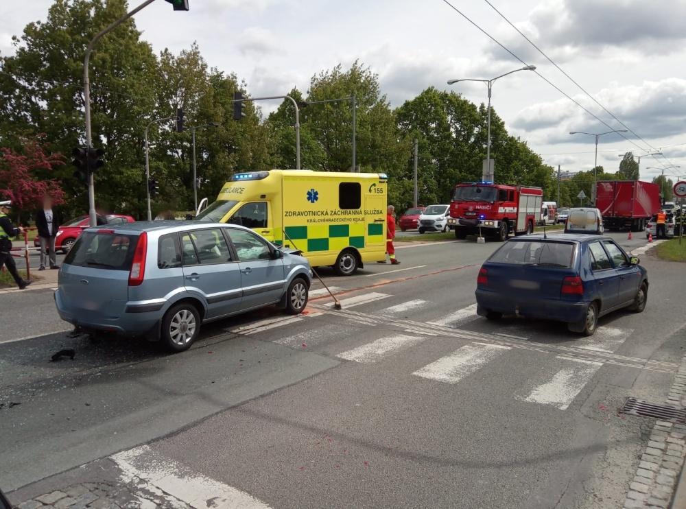 Na městském okruhu na úrovni fakultní nemocnice se srazila dvě osobní vozidla. Na místo byli vysláni profesionální hasiči z centrální stanice. Jedna osoba skončila v péči záchranářů, hasiči se postarali o likvidaci úniku provozních kapalin.