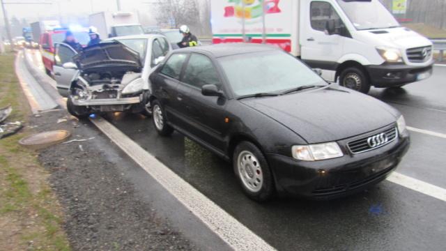 U dopravní nehody dvou osobních vozidel zasahovali profesionální hasiči z obou hradeckých stanic. Jedna zraněná osoba skončila v péči záchranářů. Hasiči místo události zabezpečili a provedli protipožární opatření. Jeden z havarovaných automobilů skončil mimo vozovku v příkopu.