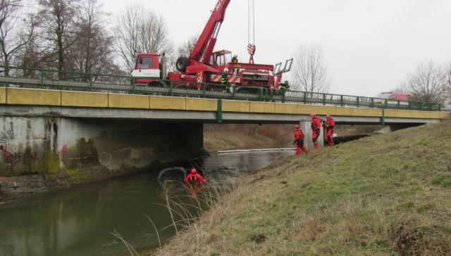 Následně se jednotky postaraly o vylovení utopeného auta, pomohl jim v tom vyprošťovací automobil. Pro případ úniku provozních kapalin umístili hasiči na hladinu sorpční hady.