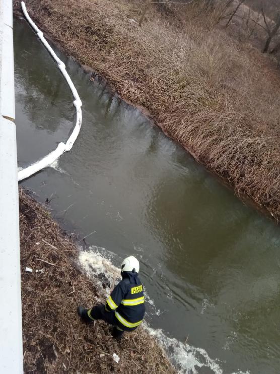 Profesionální hasiči z centrální stanice a místní dobrovolní hasiči spěchali k nahlášené dopravní nehodě osobního vozidla, které se dostalo na silnici č. I/11 mimo vozovku a sjelo přímo do místního toku Dědina.