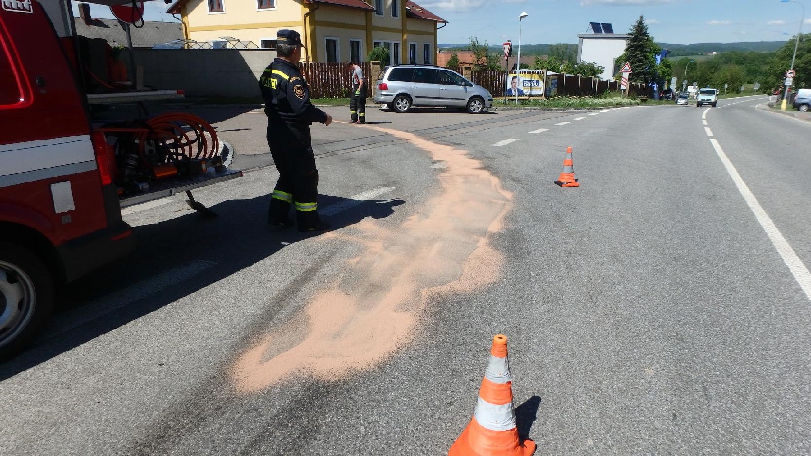 Profesionální hasiči z královéhradecké stanice Pražská zlikvidovali večer pomocí sorbentu naftu z vozovky v ulici Bohdanečská.