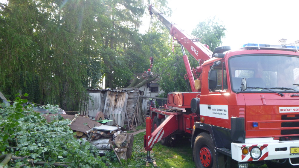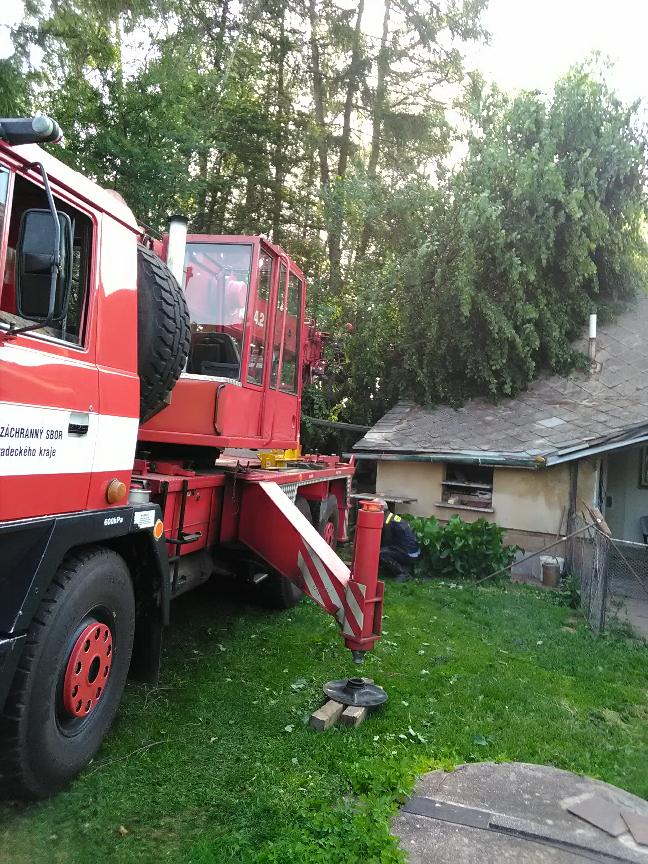 V katastru části obce Studénka došlo k pádu vzrostlého stromu na štít domu. S odstraněním stromu pomohli profesionální hasiči z Nové Paky a Jičína, byl využit i vyprošťovací automobil s jeřábem. Hasičům se podařilo strom postupně rozřezat a odstranit.