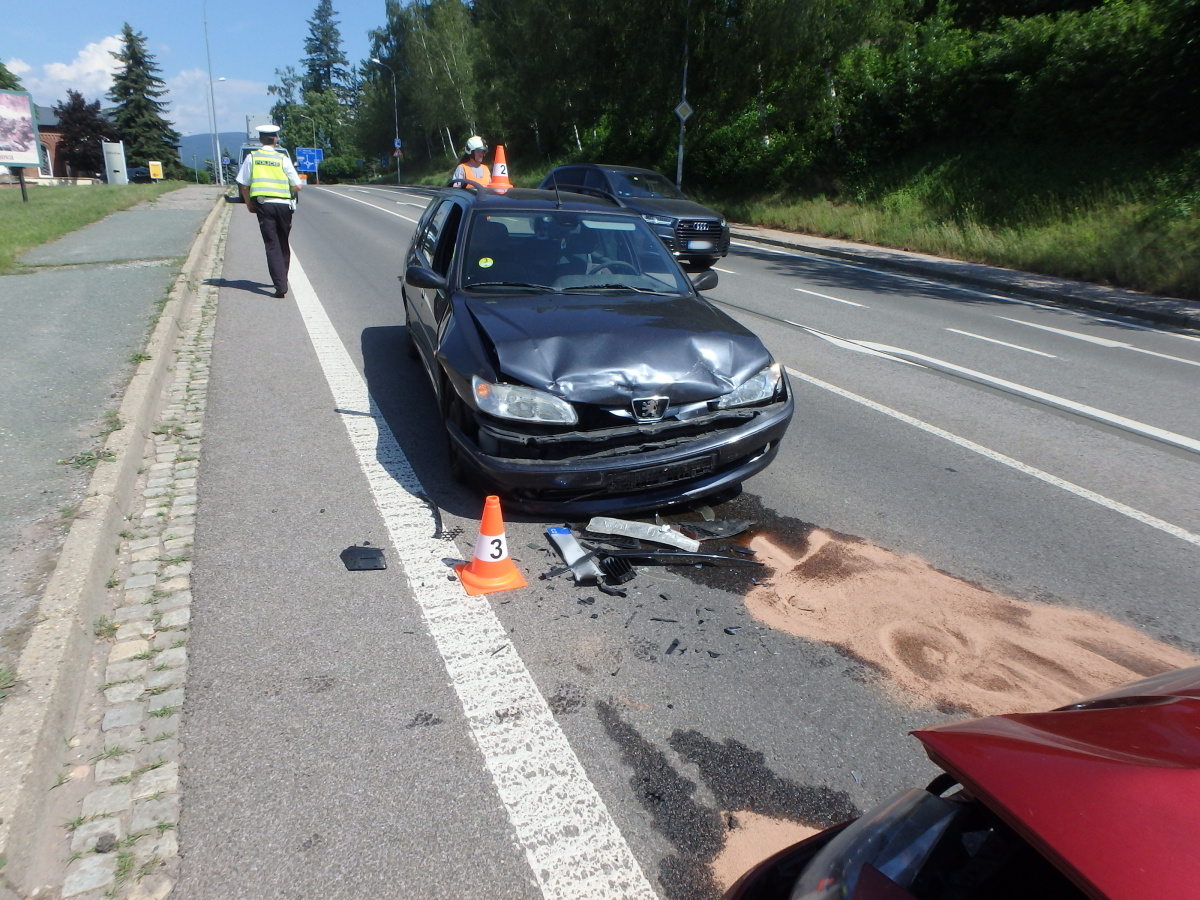 Dvě osobní vozidla havarovala v Královédvorské ulici v Trutnově. Při nehodě nebyl nikdo zraněn. Z havarovaných vozidel unikaly provozní kapaliny, na místo vyjela profesionální jednotka z Trutnova. Hasiči se postarali o odstranění následků nehody.