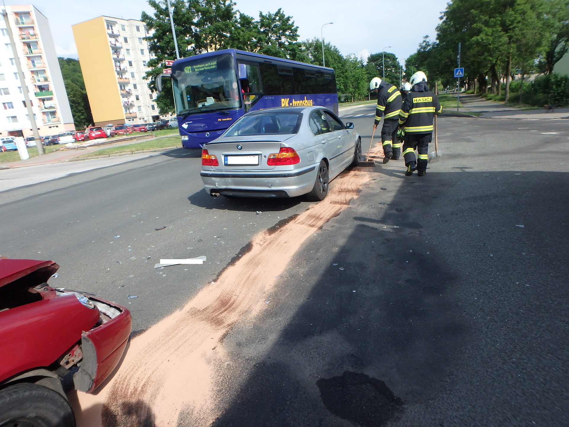 Profesionální hasiči z královéhradecké centrální stanice vyjeli dopoledne ke střetu dvou osobních automobilů, ke kterému došlo v ulici Pouchovská. Jednotka provedla protipožární opatření a uklidila komunikaci. Ke zranění osob nedošlo.