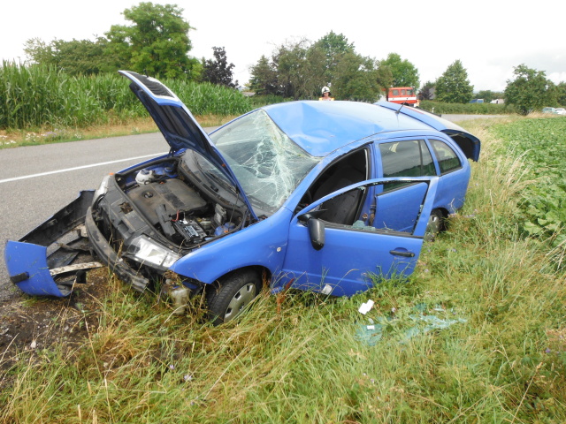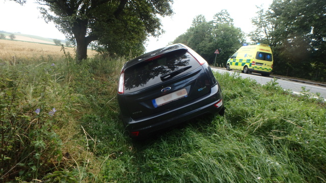 Na silnici č. 33 havaroval osobní automobil, který skončil mimo vozovku v příkopu. Jednotka místo události zabezpečila, zkontrolovala, zda nedochází k úniku kapalin a předala místo zásahu policistům.
