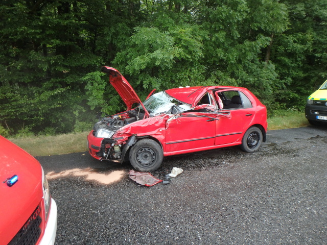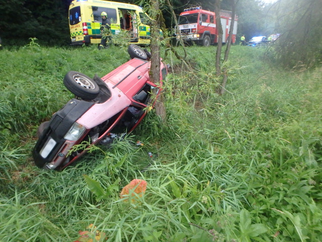 Na silnici č. 16 havaroval osobní automobil, na místo zásahu vyjeli profesionální hasiči z Trutnova a dobrovolná jednotka z Hostinného. Automobil vyjel mimo komunikaci, kde skončil na boku opřený o strom. Osoba skončila v péči záchranářů. Hasiči následně vrátili vůz zpět na kola, k úniku provozních kapalin nedošlo. Místo zásahu si pak převzali policisté.
