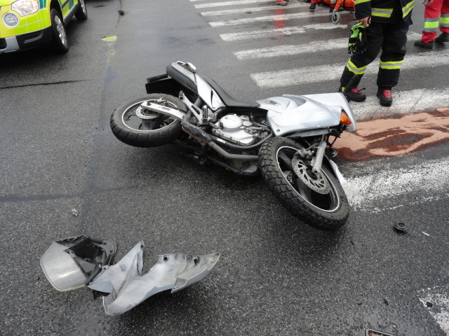 V Borské ulici zasahovali profesionální hasiči z Náchoda u dopravní nehody osobního automobilu a motocyklu. Jednu osobu si převzali do péče záchranáři, hasiči zasypali uniklé provozní kapaliny a komunikaci uklidili.
