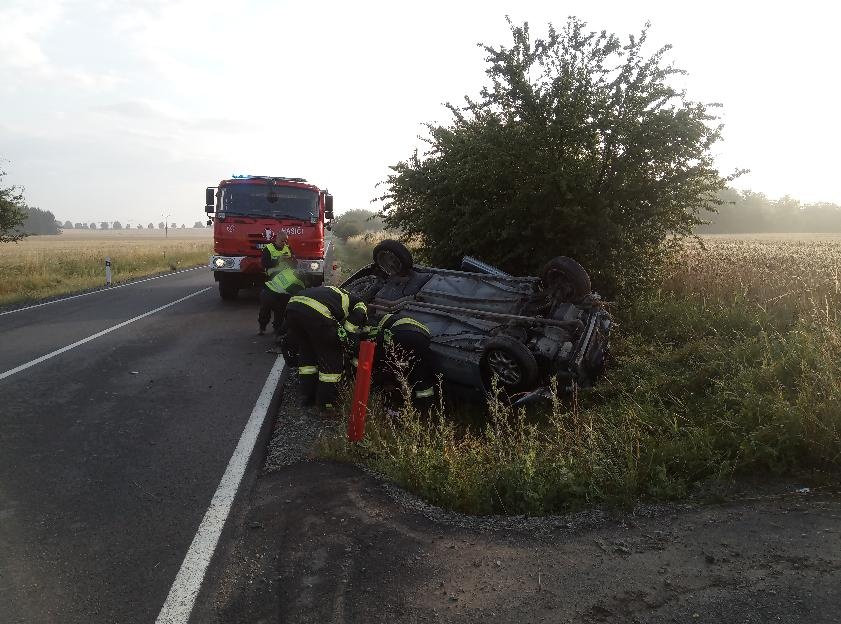 Profesionální hasiči z Dobrušky a dobrovolná jednotka z Opočna zasahovali u dopravní nehody osobního automobilu, který skončil mimo vozovku převrácený na střeše. O jednoho člověka se postarali záchranáři a převzali si jej do péče. Jednotky provedly na voze opatření proti vzniku požáru a řídily v místě nehody provoz na komunikaci. Následně převrátili hasiči vozidlo zpět na kola a umístili jej mimo komunikaci.