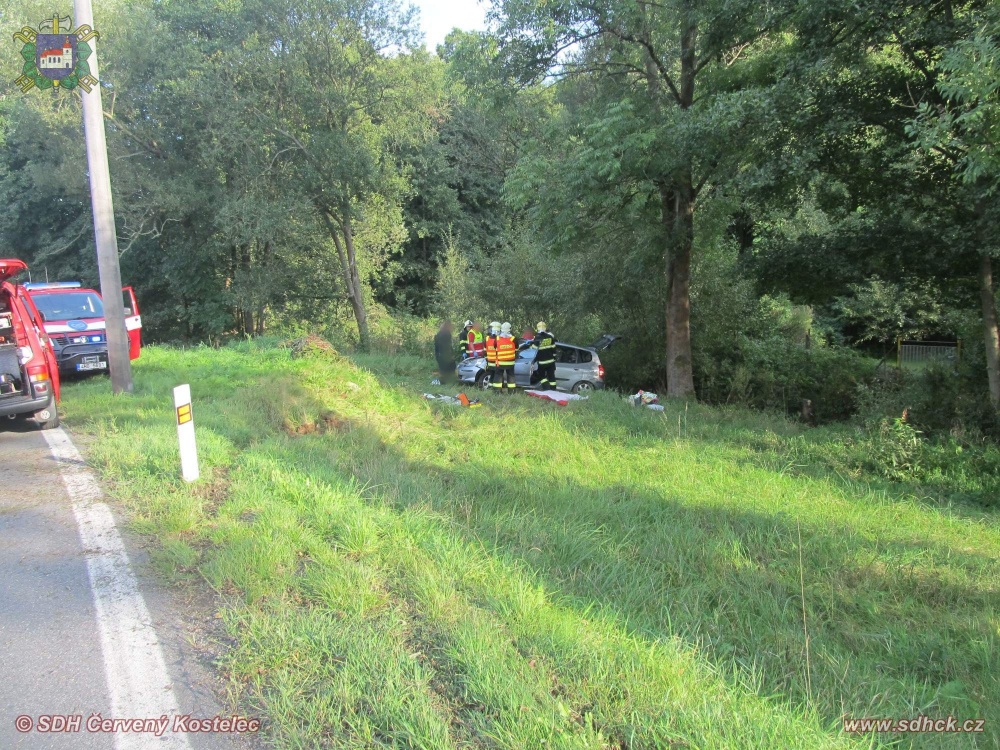 Dvě jednotky hasičů spěchaly k nahlášené dopravní nehodě, která se stala na silnici č. 567 v katastru části Zbečník. Osobní vozidlo havarovalo do sloupu veřejného osvětlení, který doslova přerazilo. Hasiči museli z vozu jednu zraněnou osobu vyprostit. Celkem třem zraněným lidem byla poskytnuta první předlékařská péče a poté byly předány zdravotnické záchranné službě. Hasiči dále zajistili místo nehody, o poškozeném sloupu byly vyrozuměny technické služby. Na místě zasahovali profesionální hasiči z Náchoda a dobrovolná jednotka z Červeného Kostelce.