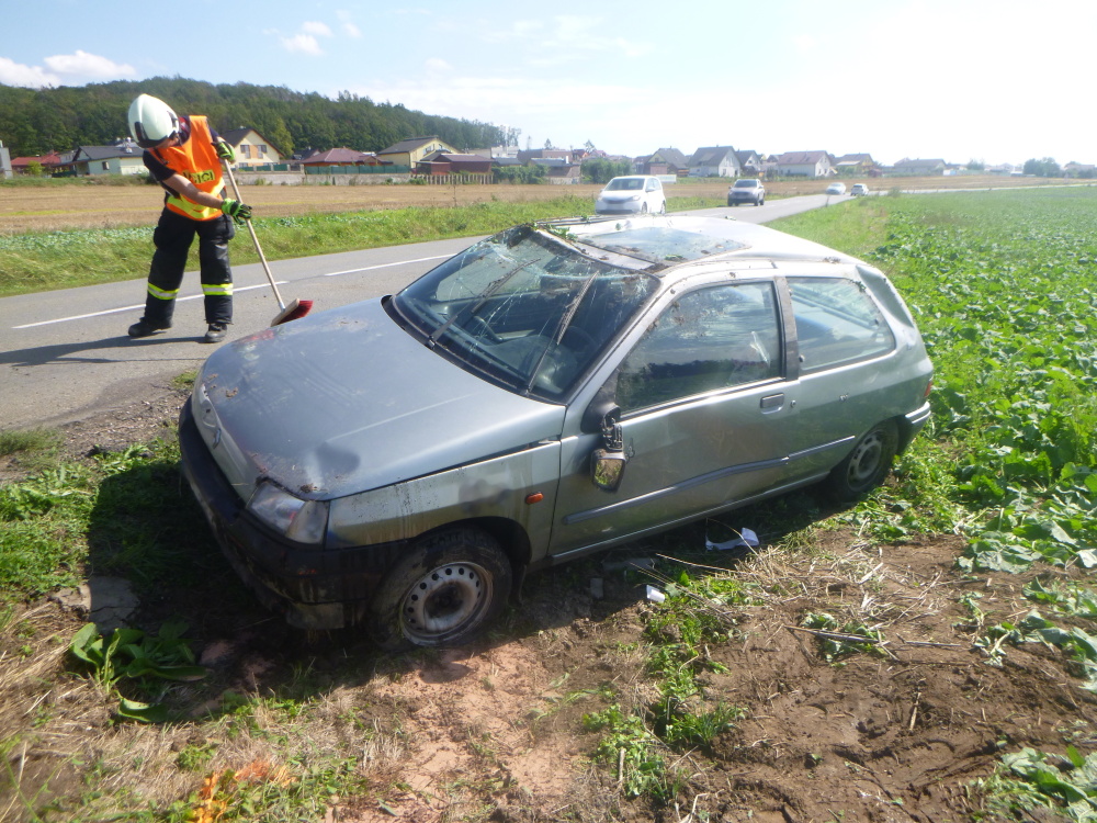 K nahlášené dopravní nehodě, kdy se měl automobil převrátit mimo komunikaci na střechu ve Vysoké nad Labem, vyjížděli profesionální hasiči z centrální hradecké stanice. Osoba z vozidla se nacházela při příjezdu jednotky na místo události mimo havarovaný vůz, do péče si ji převzali zdravotničtí záchranáři. Jednotka místo nehody zabezpečila a následně otočila automobil zpět na kola. Na voze provedli hasiči protipožární opatření a odpojili akumulátor, k úniku provozních kapalin nedošlo. Místo zásahu si následně převzali policisté.
