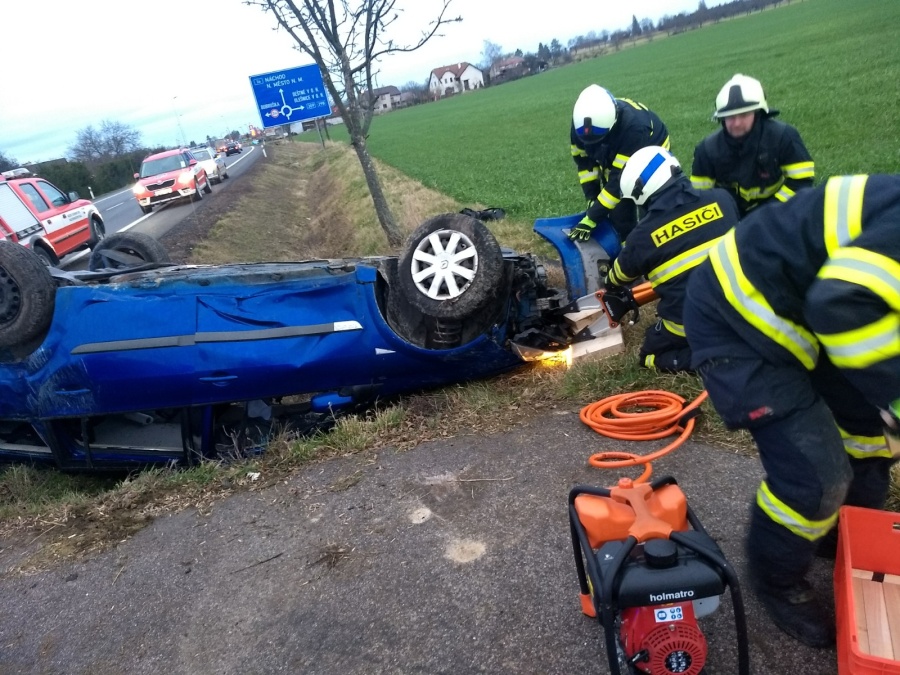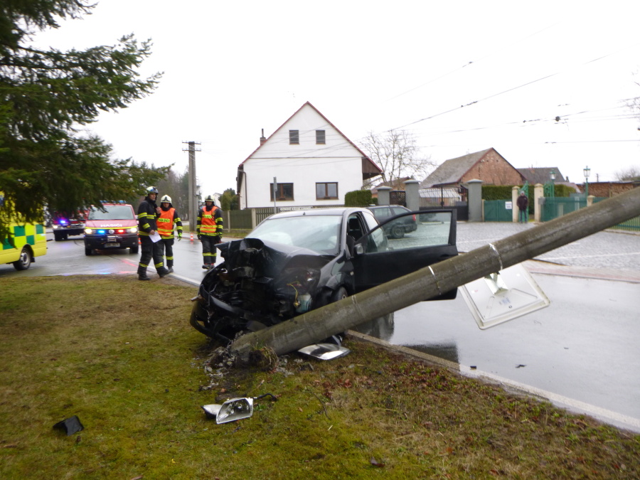 Před polednem zasahovali profesionální hasiči z centrální hradecké stanice a dobrovolná jednotka z Třebechovic pod Orebem u dopravní nehody osobního automobilu, který narazil do sloupu elektrického vedení. Jeden člověk byl při nehodě zraněn, postarali se o něj záchranáři. Hasiči pomohli se zajištěním místa události, zabezpečili havarované vozidlo a opáskovali prostor kolem poškozeného sloupu. Místo zásahu si převzali policisté a energetici.