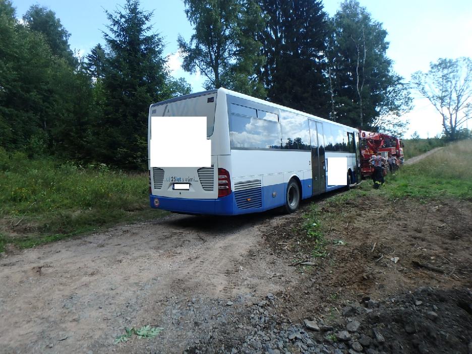 Profesionální hasiči z Rychnova nad Kněžnou a dobrovolní hasiči z Rokytnice v Orlických horách vyprostili pomocí jeřábu zapadlý autobus. Ke zranění cestujících nedošlo, uvnitř se nacházel pouze řidič.