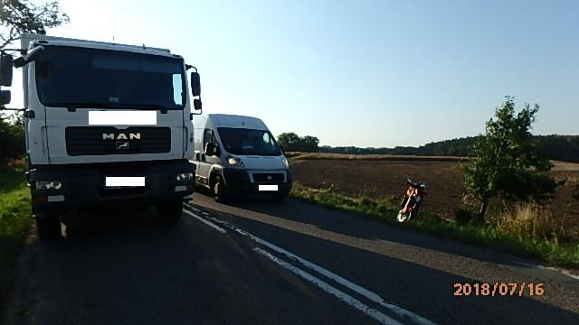 Jaroměřští profesionální hasiči vyjeli ráno k nehodě nákladního vozidla a motorky, která se stala u Rychnovku. Motorkář utrpěl zraněný a byl odvezen sanitním vozem do nemocnice. Provoz byl v místě střetu řízen kyvadlově.