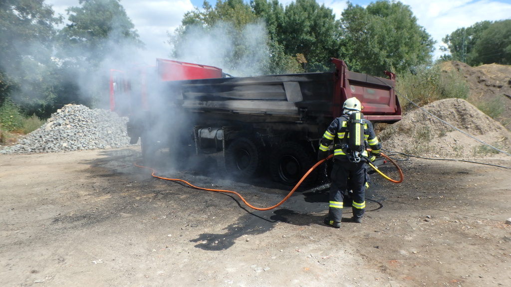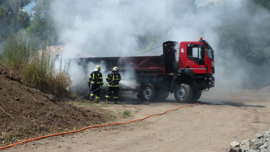 Na Dukelské třídě došlo ve středu před polednem k požáru nákladního automobilu značky Iveco. Neopatrností řidiče došlo při vykládce materiálu z korby vozu ke stržení drátu elektrického napětí a následně začal automobil hořet.