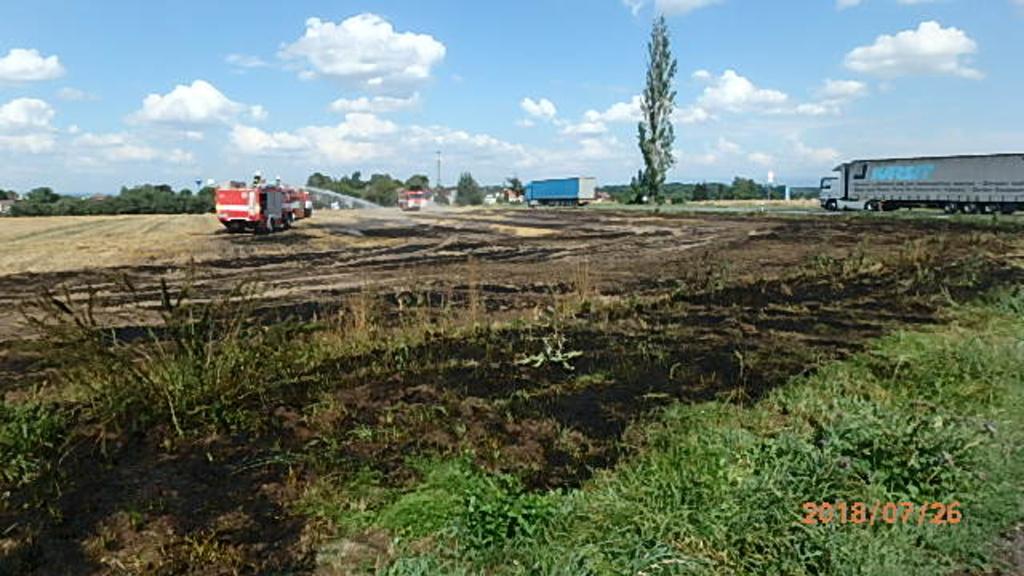 U požáru strniště zasahovali odpoledne profesionální hasiči z Jaroměře a ze stanice Hradec Králové – Pražská a dále dobrovolné jednotky z Holohlav a Černožic. Pole hořelo několik metrů od hlavní komunikace I/33. Událost se obešla beze škody.