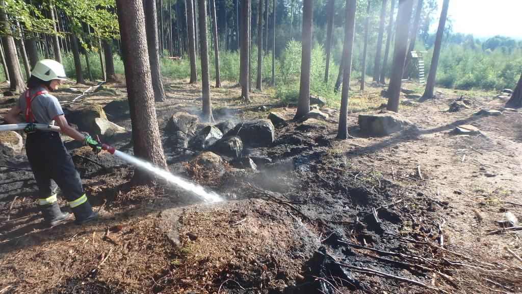 Na katastrálním území části obce Hájemství došlo k požáru lesního porostu na ploše asi 1,5 hektaru. Na místo bylo povoláno celkem osm jednotek požární ochrany a na základě toho byl vyhlášen druhý poplachový stupeň. Oznamovatel měl vidět kouř vycházející z lesa. Hasiči nejprve provedli průzkum, aby zjistili, odkud kouř vychází a jaká je příčina. Nakonec byl nalezen požár většího rozsahu v těžko přístupném terénu na vrcholu kopce, přičemž došlo také k požáru stromů.