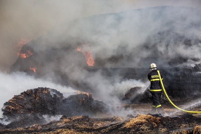 Profesionální hasiči ze Dvora Králové nad Labem a z Trutnova a dále dobrovolní hasiči z Hajnic zasahovali u požáru slámy v prostoru výfuku kombajnu. K požáru došlo při zemědělských pracích na poli. Událost se obešla beze škody.