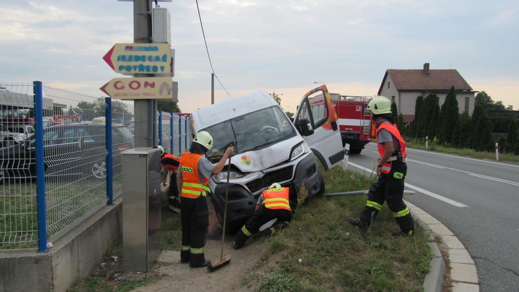 V ulici Bratří Štefanů zasahovali profesionální hasiči z centrální stanice u dopravní nehody dodávky, která havarovala do příkopu a zároveň porazila lampu veřejného osvětlení s dopravním značením. Nehoda se obešla bez zranění. Hasiči místo události zajistili a provedli protipožární opatření. Uniklé provozní náplně z dodávkového vozu zasypala jednotka sorbentem.