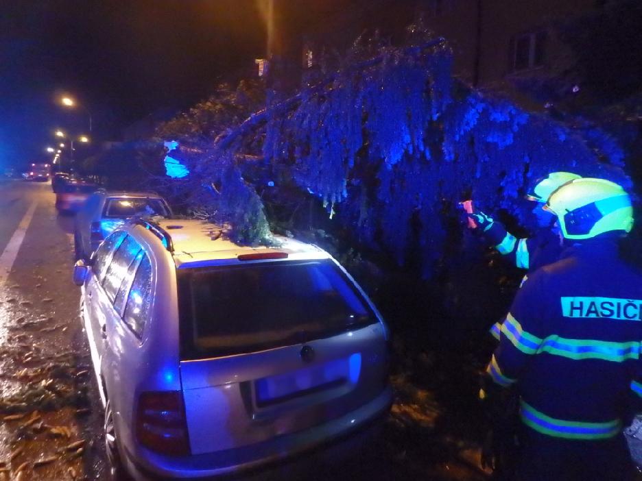 Profesionální hasiči z Rychnova nad Kněžnou a dobrovolná jednotka z Kostelce nad Orlicí odstraňovali část stromu, která spadla na stojící osobní vozidlo v ulici Rudé armády. Při události nebyl nikdo zraněn.