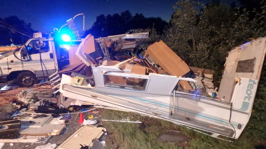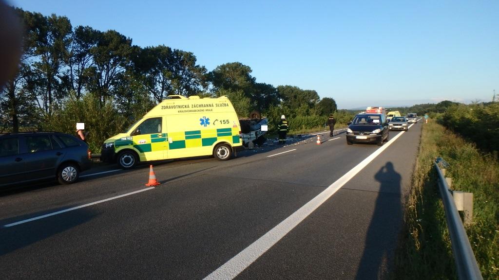 Profesionální hasiči z Jaroměře vyjeli v 18:59 do Říkova ke střetu osobního automobilu a obytného vozu. Obě zahraniční vozidla skončila převrácená mimo komunikaci v příkopu.