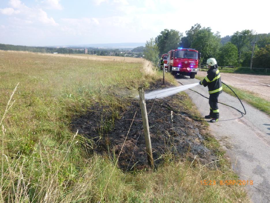 Broumovští profesionální hasiči zasahovali u požáru suchého travního porostu. Požár byl z větší části uhašen před příjezdem hasičů, jednotka poté místo dohasila. Událost se obešla beze škody.