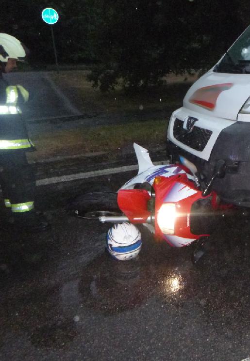V Náchodské ulici se stala dopravní nehoda dodávky a motocyklu. Na místo vyrazili profesionální hasiči ze stanice Trutnov. Po svém příjezdu hasiči zjistili, že osoba z motocyklu je zaklíněna pod dodávkou. Jednotka zraněného vyprostila a předala do péče záchranářů. Na místě zasahoval také vrtulník letecké záchranné služby, který transportoval pacienta do zdravotnického zařízení.