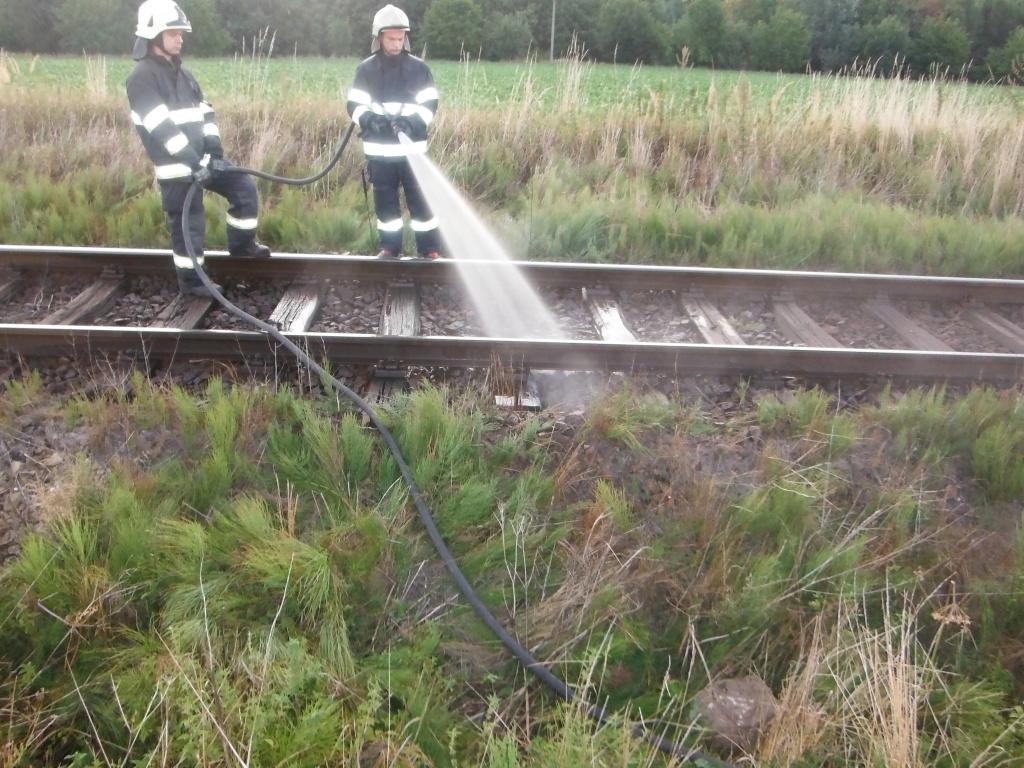 Profesionální jednotka z Hořic likvidovala požár pražce na kolejích železniční trati. Hasiči místo uhasili a do příjezd drážní jednotky dále ochlazovali.