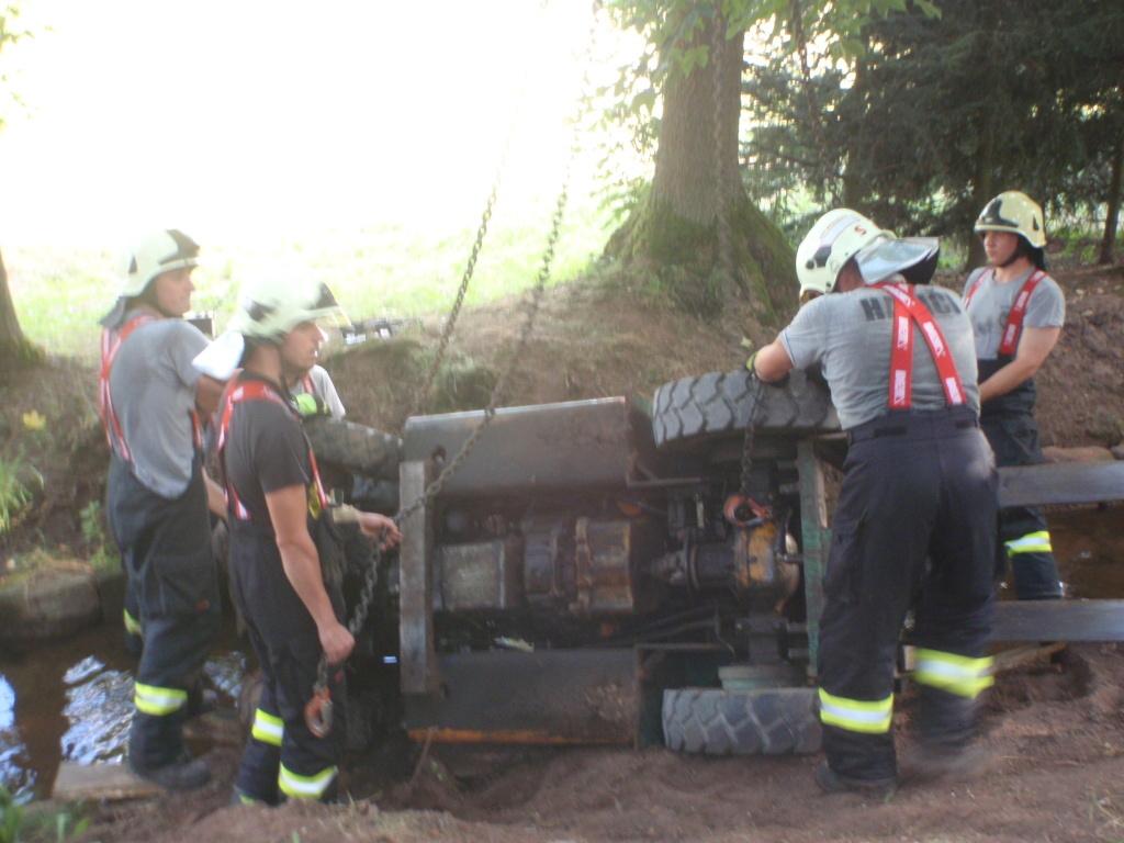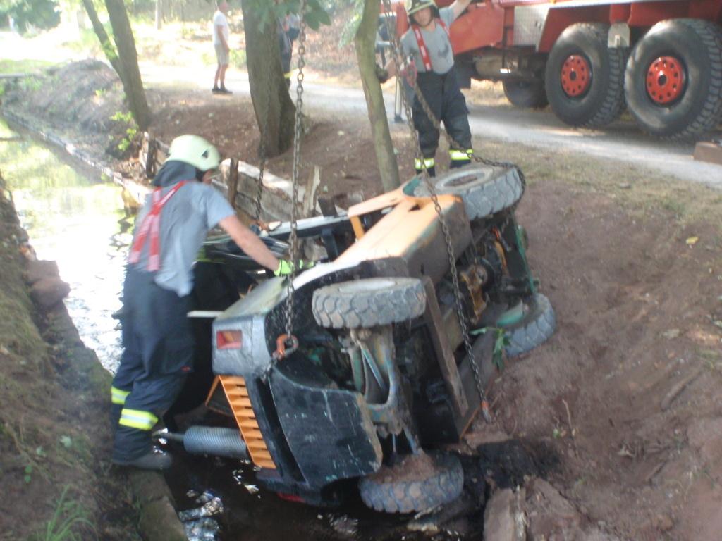 V části Roškopov sjel do potoka vysokozdvižný vozík, ze kterého následně začala unikat nafta. Jednotky začaly hned po svém příjezdu unikající kapalinu zachytávat, uniklo asi 30 litrů nafty. Nakonec se podařilo hasičům ještěrku z vody vyprostit, k újmě na životním prostředí nedošlo. Uniklou kapalinu zasypali hasiči sorpčním materiálem na vodní hladinu. Na místě zasahovali profesionální hasiči z Nové Paky a Jičína a dále dobrovolné jednotky z Nové Paky a Staré Paky.