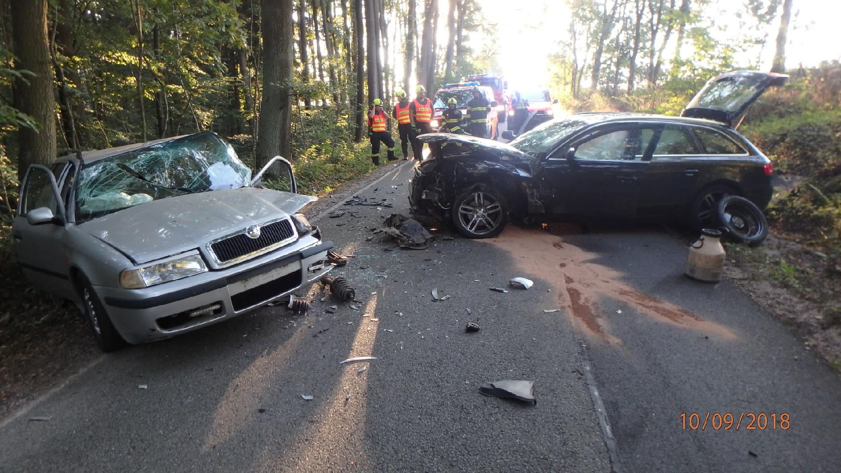 Profesionální hasiči z Rychnova nad Kněžnou a dobrovolní hasiči z Kostelce nad Orlicí zasahovali ráno u dopravní nehody dvou osobních automobilů. Ta se stala u Hřibin. Pět osob utrpělo lehčí zranění. Zdravotnická záchranná služba zraněné ošetřila a odvezla do nemocnice. Jednotky provedly na vozidlech protipožární opatření. Uniklé provozní kapaliny zasypali hasiči sorbentem. Po naložení vozů na odtah provedli hasiči úklid vozovky. Komunikace byla v místě zásahu na více než dvě hodiny zcela neprůjezdná.