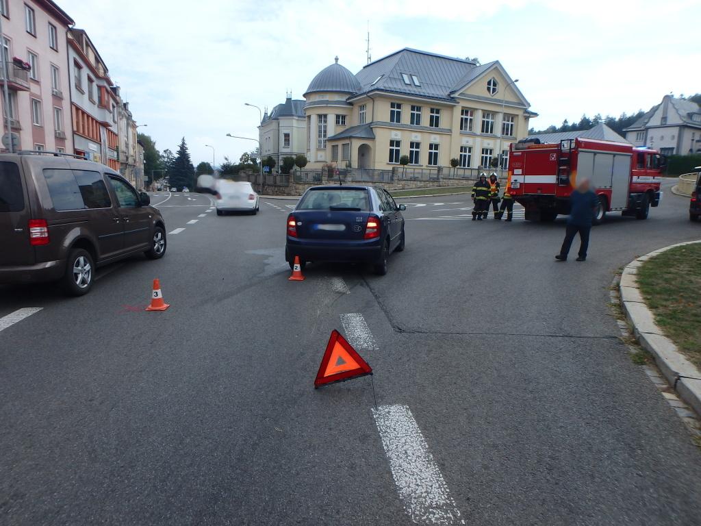 Trutnovští profesionální hasiči odstraňovali následky dopravní nehody dvou osobních vozidel na Horním předměstí. Nehoda se obešla bez zranění osob, nedošlo ani k úniku provozních náplní. Po došetření zajistili hasiči úklid komunikace.